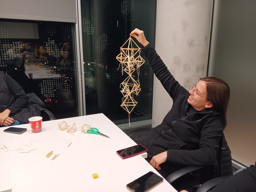 Ukrainian artists Valeriia Spirina led a workshop on the traditional Ukrainian Christmas Craft. The tradition of the Christmas spider comes from a Ukrainian legend about a poor widow and her children who could not afford to decorate their Christmas tree. On Christmas Eve, spiders spun beautiful webs around the tree, which transformed into silver and gold when sunlight touched them on Christmas morning, bringing joy and prosperity to the family.