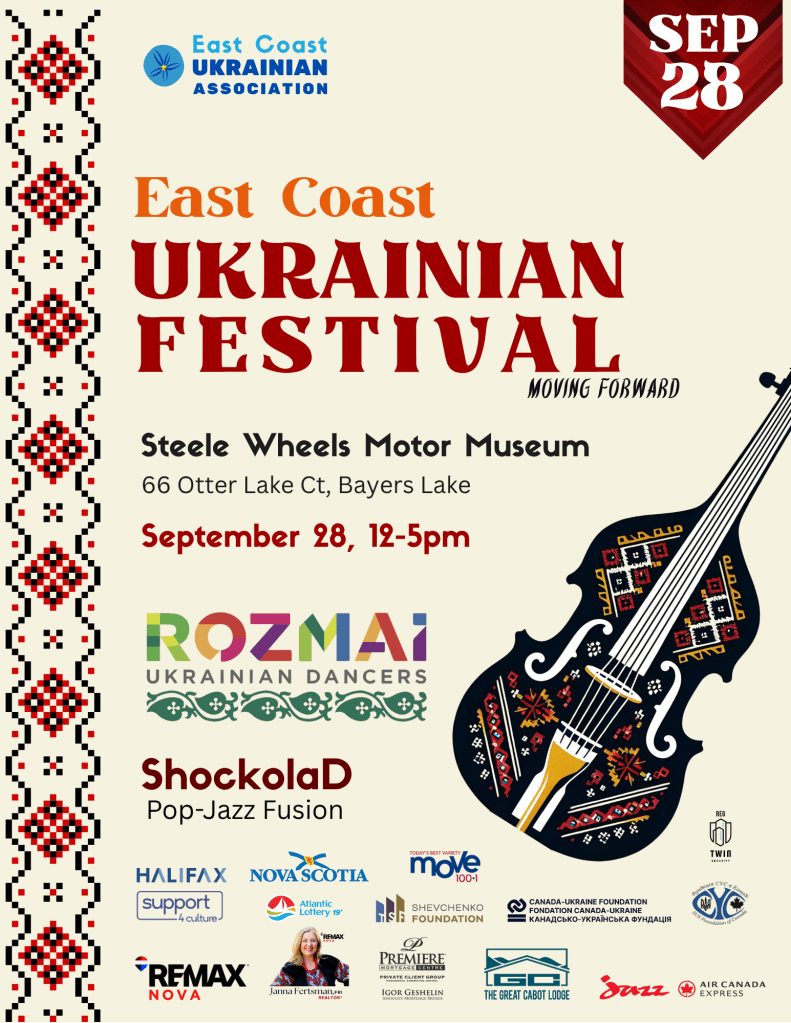 Thank you all who make the East Coast Ukrainian Festival 2025 (September 28, 12-5pm) a great success! With a new modern venue at the Steele Wheels Motor Museum at Bayers Lake and an impressive line up of visiting artists and local talent, it was a true testament to the flourishing Ukrainian culture, both traditional and modern! Visit our our Facebook and Instagram for Festival highlights, photos, and videos!